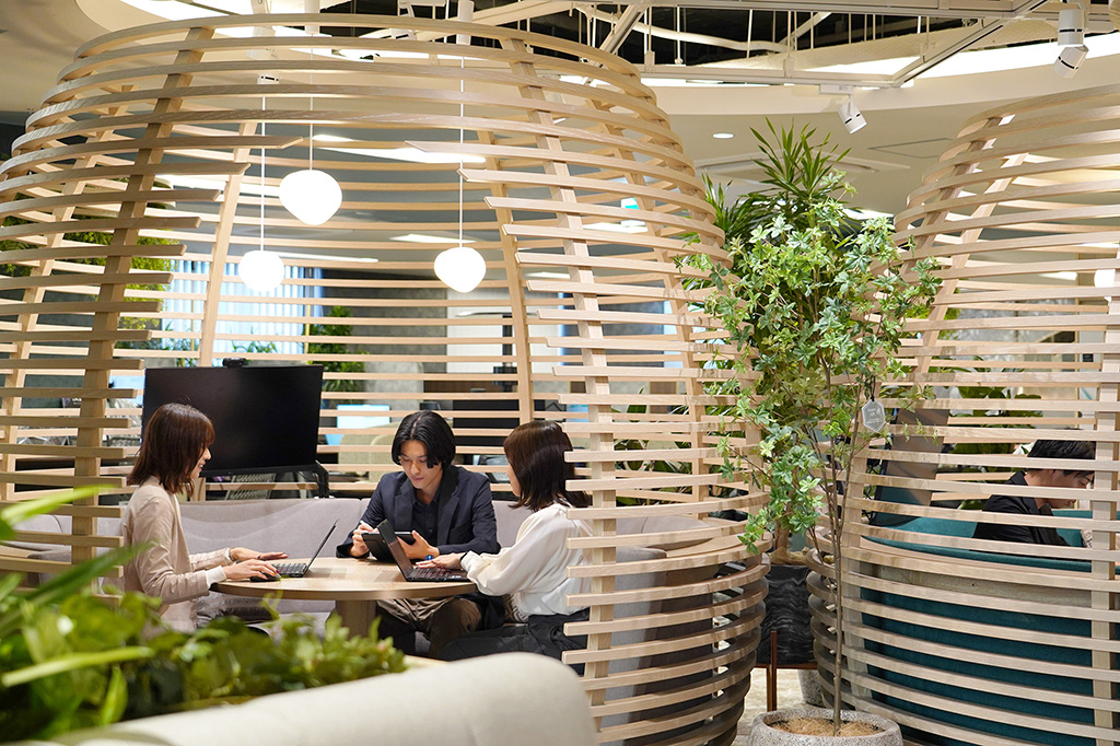 全体としては、デスクワークやミーティングなど、業務上の機能を満たすなかで画一的になりがちなオフィスを、有機的なデザインで丁寧につなぎ、“唯一無二の空間”として完成させています。