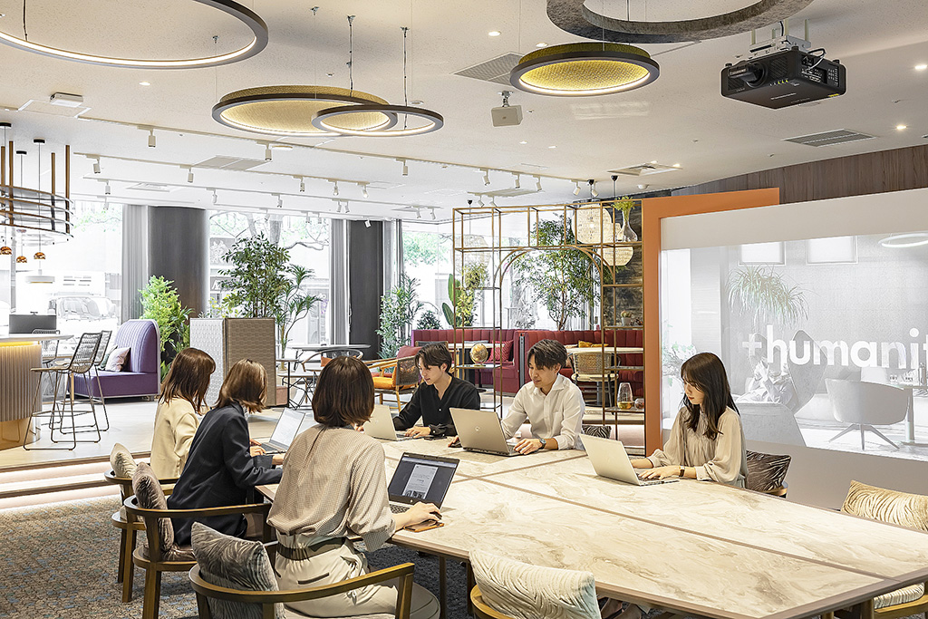 コワーキングスペースにはペンダントライトを、会議スペースの各所にはダウンライトを置き、デザインと機能性の両方を追求しました。