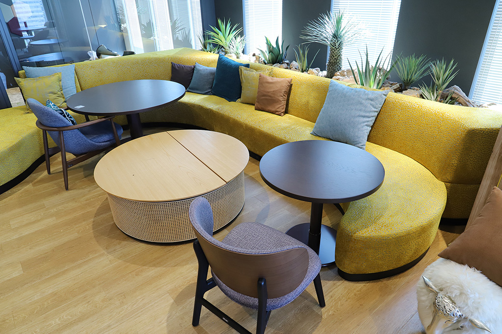 上記の場合、一般的な執務スペースとは異なるような大きく印象を変えた空間づくりが可能です。
