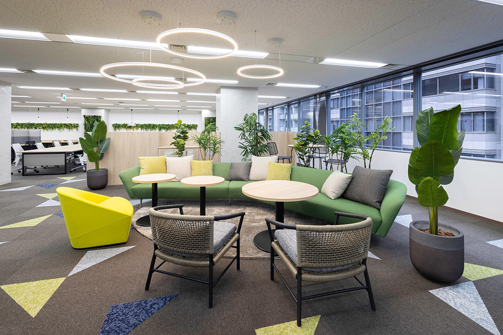 執務スペース(例:タイルカーペット)と比較して、空間の印象を大きく変えることができるため、従業員が頭の切り替え(仕事モード⇒リラックスモード)をしやすくなります。