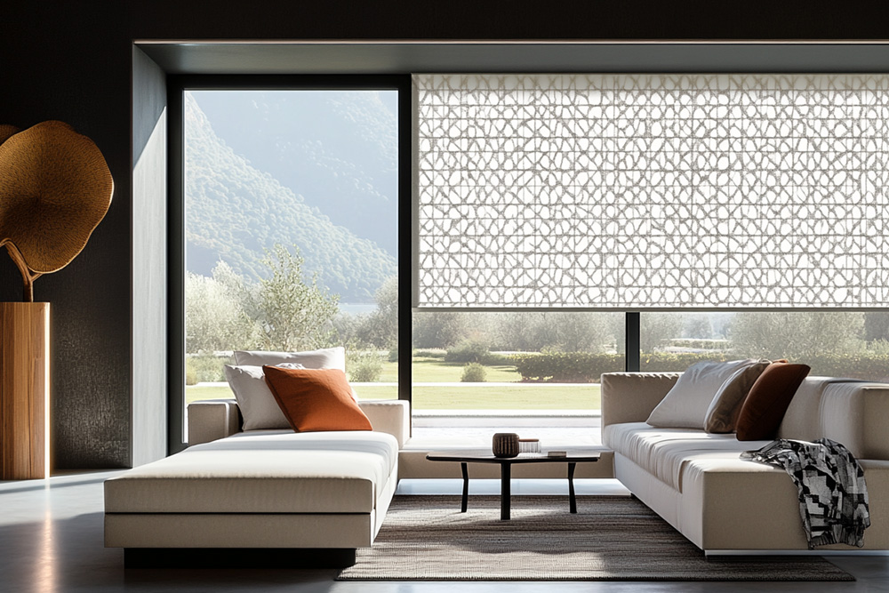 例えば、半透明の生地に企業ロゴや商品をプリントしたロールスクリーンであれば、光を通してロゴや商品を柔らかく浮かび上がらせる効果があり、洗練された印象を与えます。また、パンチングしたアルミブラインドにパターンデザインを施したものや、特殊な織り方の布製ブラインドなど、素材そのものの質感を活かしたデザインブラインドもあります。これらは芸術作品のような役割も果たし、企業の個性も演出できるでしょう。