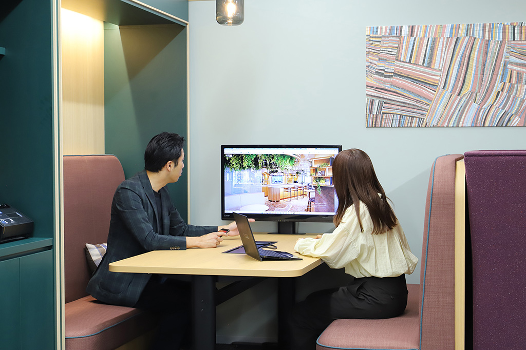 ショートミーティングや集中作業、オンライン会議など、さまざまなシーンに使える多機能スペースとして活用できます。
