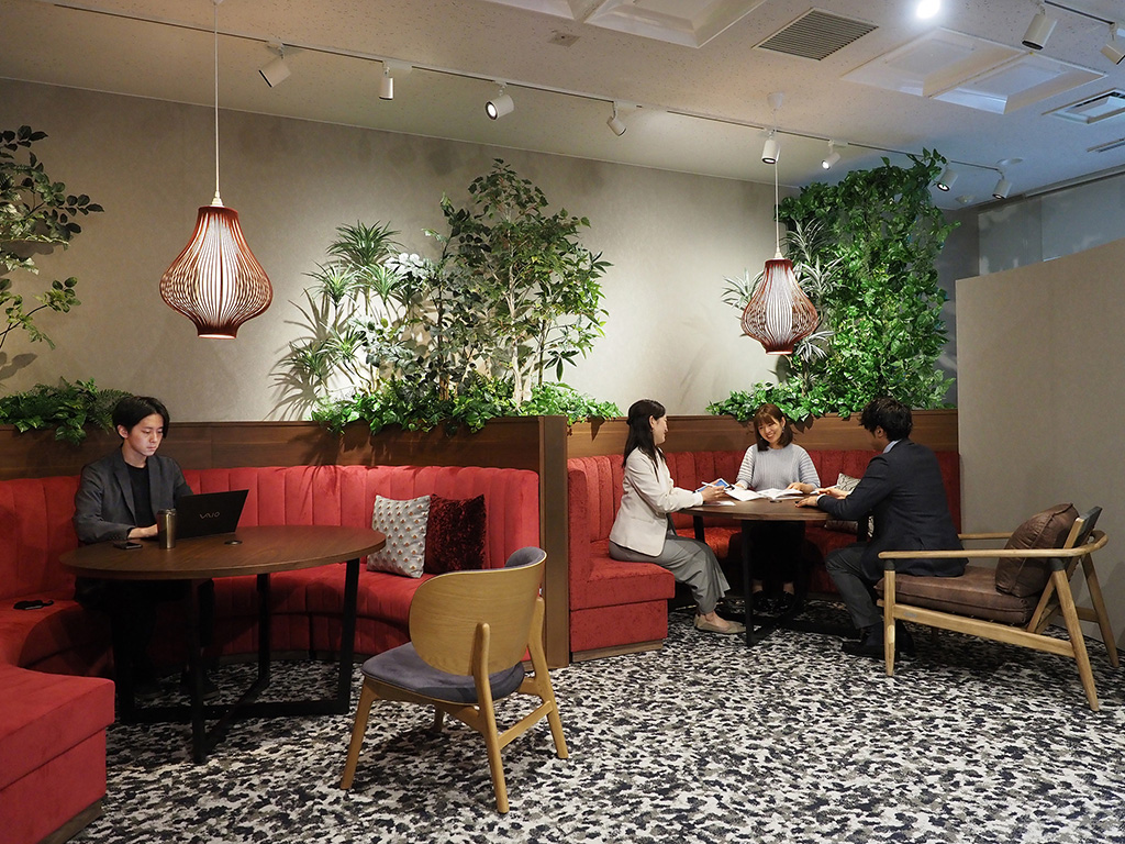 さらに、ロングベンチ席やカフェエリアを隣接させているため、懇親会やランチ利用も可能です。