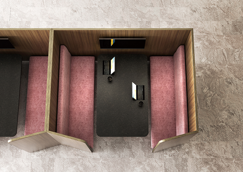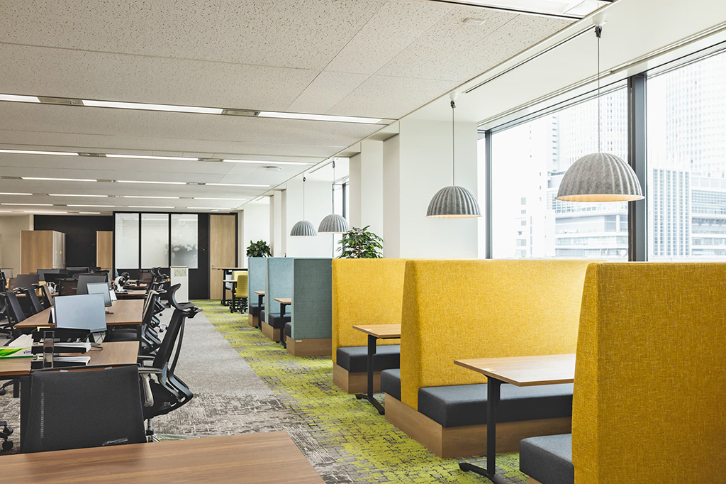 ファミレス席を複数並べることで、区画を区切ることにもなるため、オフィス全体の空間づくりにも役立ちます。