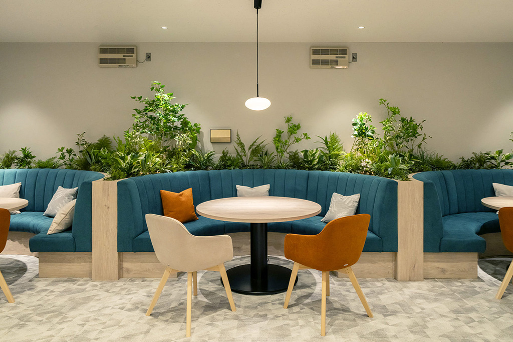 ファミレス席については、飲食店向けのようなファミレス席ではなく、オフィス空間に適したファミレス席にするために、座り心地を上質にするなど、家具の選定や配置にもこだわりました。