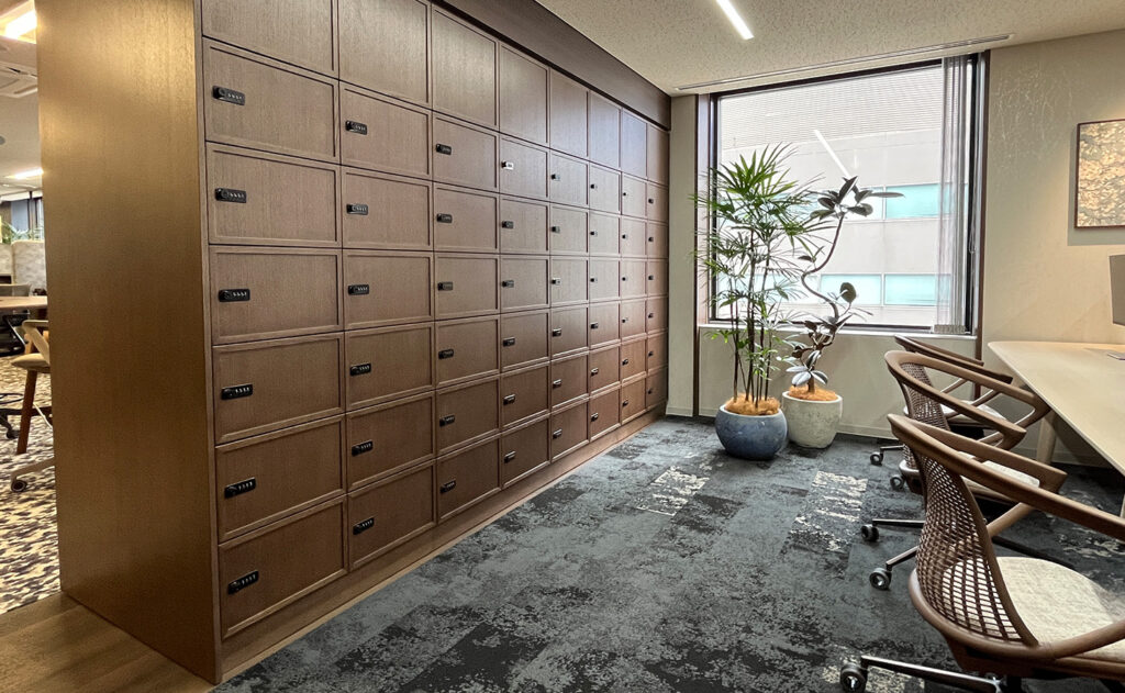 ロッカーは、単に荷物をしまう場所ではなく、社員一人ひとりの基地として機能するよう、アクセスしやすい場所に適切な数を配置することが重要です。