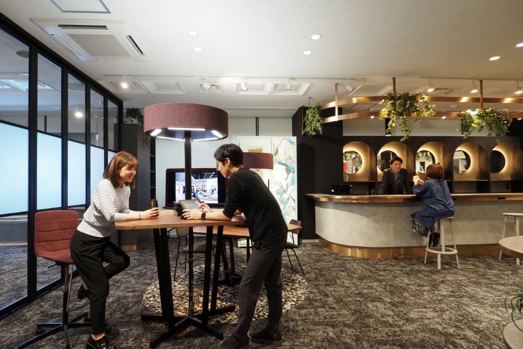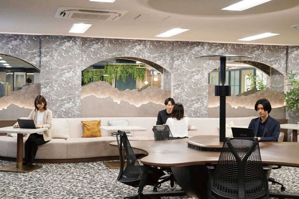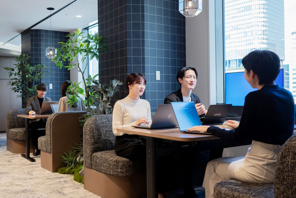 カフェカウンター、ベンチ席、ソファ席、集中ブース、ワークデスク等さまざまな過ごし方ができる家具が配置されており、自分の業務内容や働き方に合わせて自由に席を選択することができます。