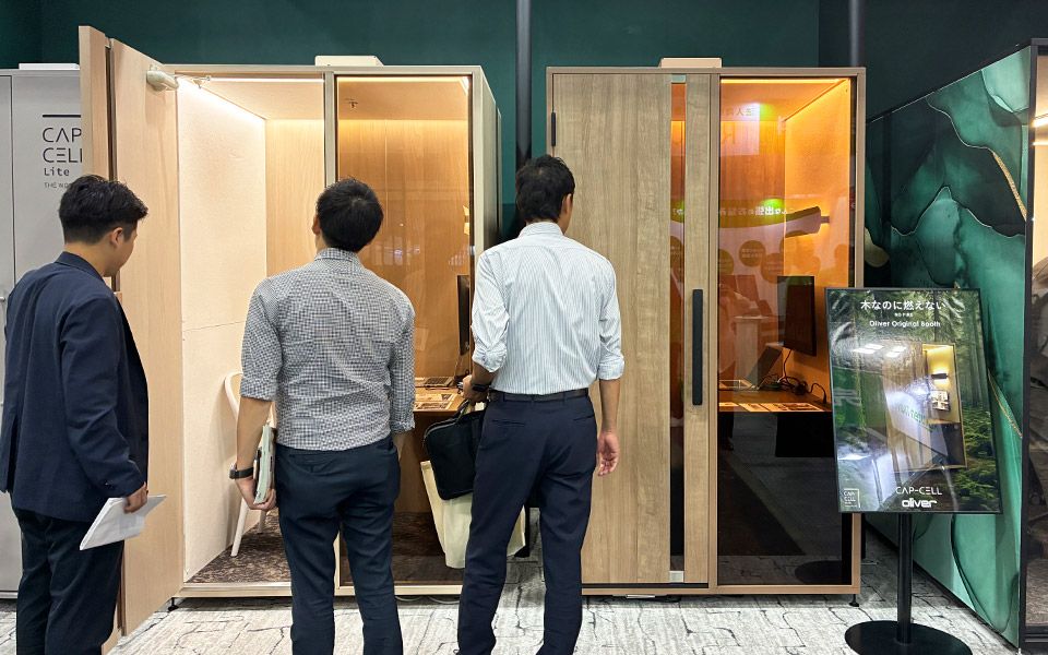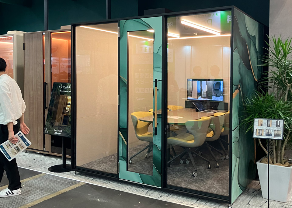 人気の個室ブース “CAP-CELL Lite” に6人用タイプが新登場。シリーズ全てにエアコン付きソファも搭載可能で、夏本番に向けて快適な個室ブースをご体感いただきました。
