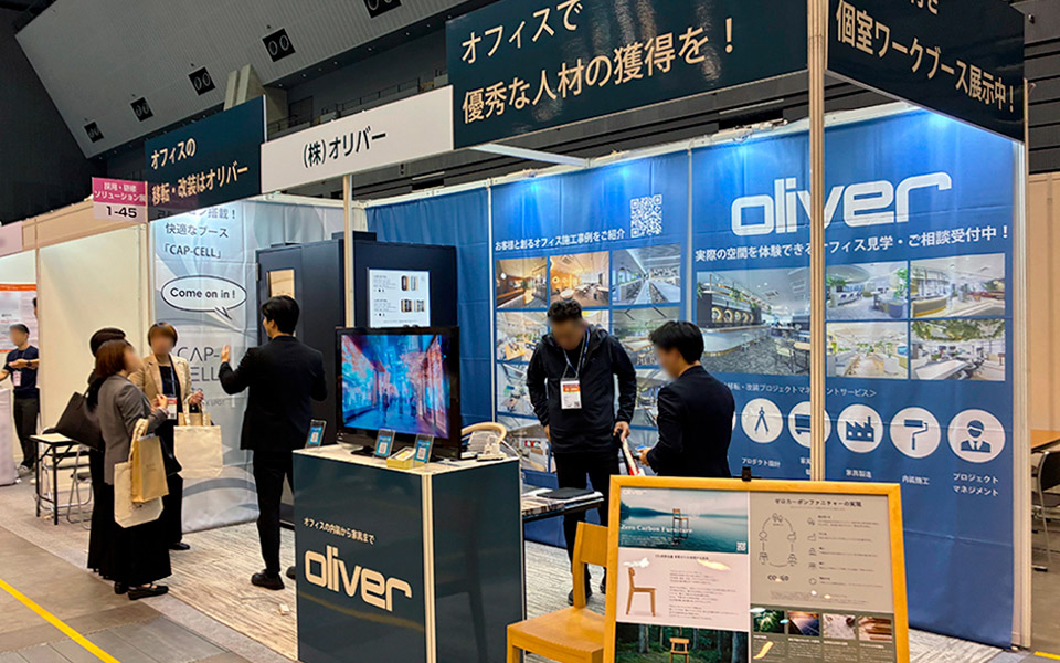 ブースでは、事例のご紹介やこれからの「来たくなる」オフィス作りのヒントのご紹介、また、全国でご好評をいただいているエアコン付き個室ブース “CAP-CELL Lite” や、人と環境に調和する “WonW Chair”、環境負荷低減の新たな取組み “ゼロカーボンファニチャー” を展示し、多くのお客様にご覧いただきました。
