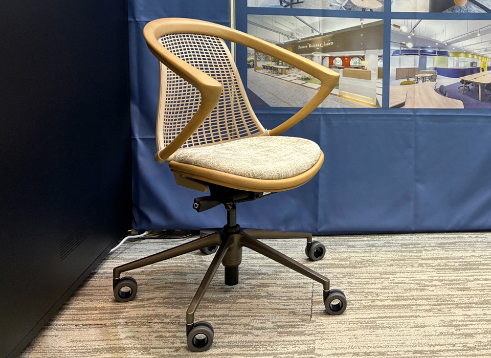 360度、どこから見ても美しいフォルムの “WonW Chair (ダブルオンダブルチェア)” を展示いたしました。人間工学に基づいた快適な座り心地で、人と環境に調和するNEW CHAIRです。