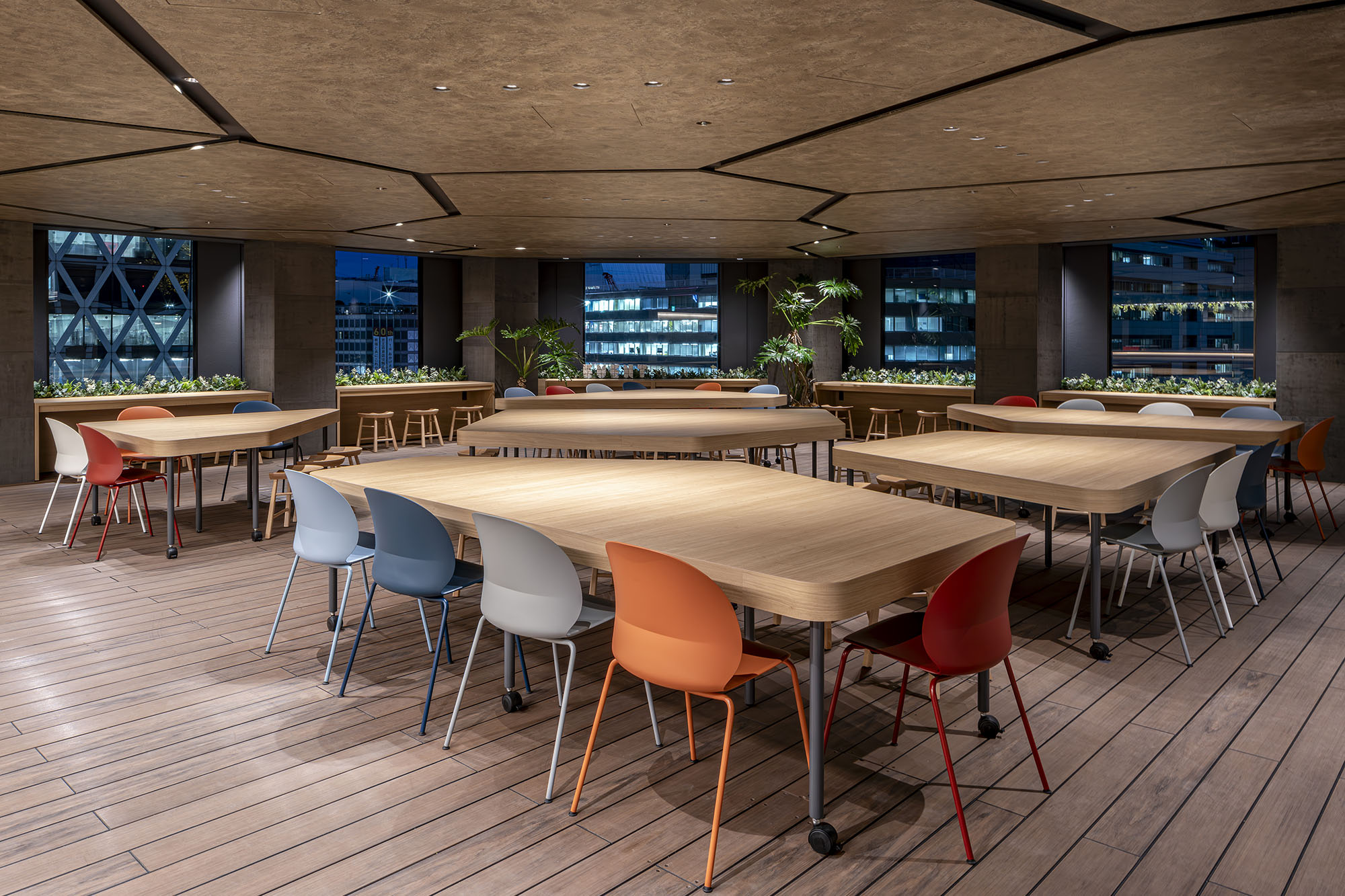 全国に拠点を構える大成建設株式会社様。すべての従業員のためのコモンスペースを目指し、誰もが使いやすく、従業員を日常的に自然とつなぐ新たな場の創造を目的として食堂を改装されました。