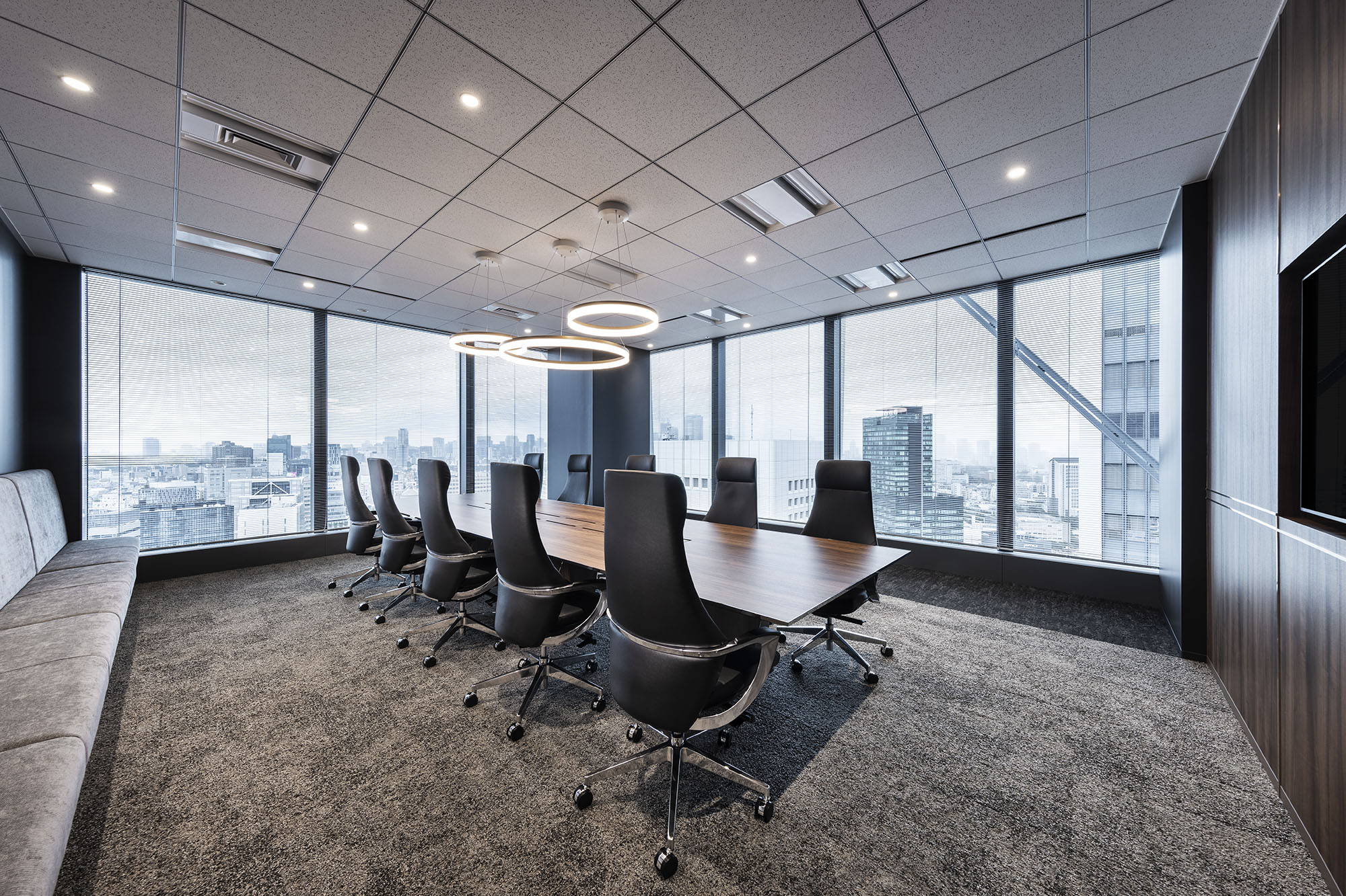 主に応接室のデザインを担当。窓のない応接室には、中庭を設えた特別な空間をご提案することで、すべての応接室に同じ上質さを感じられる工夫を施しました。