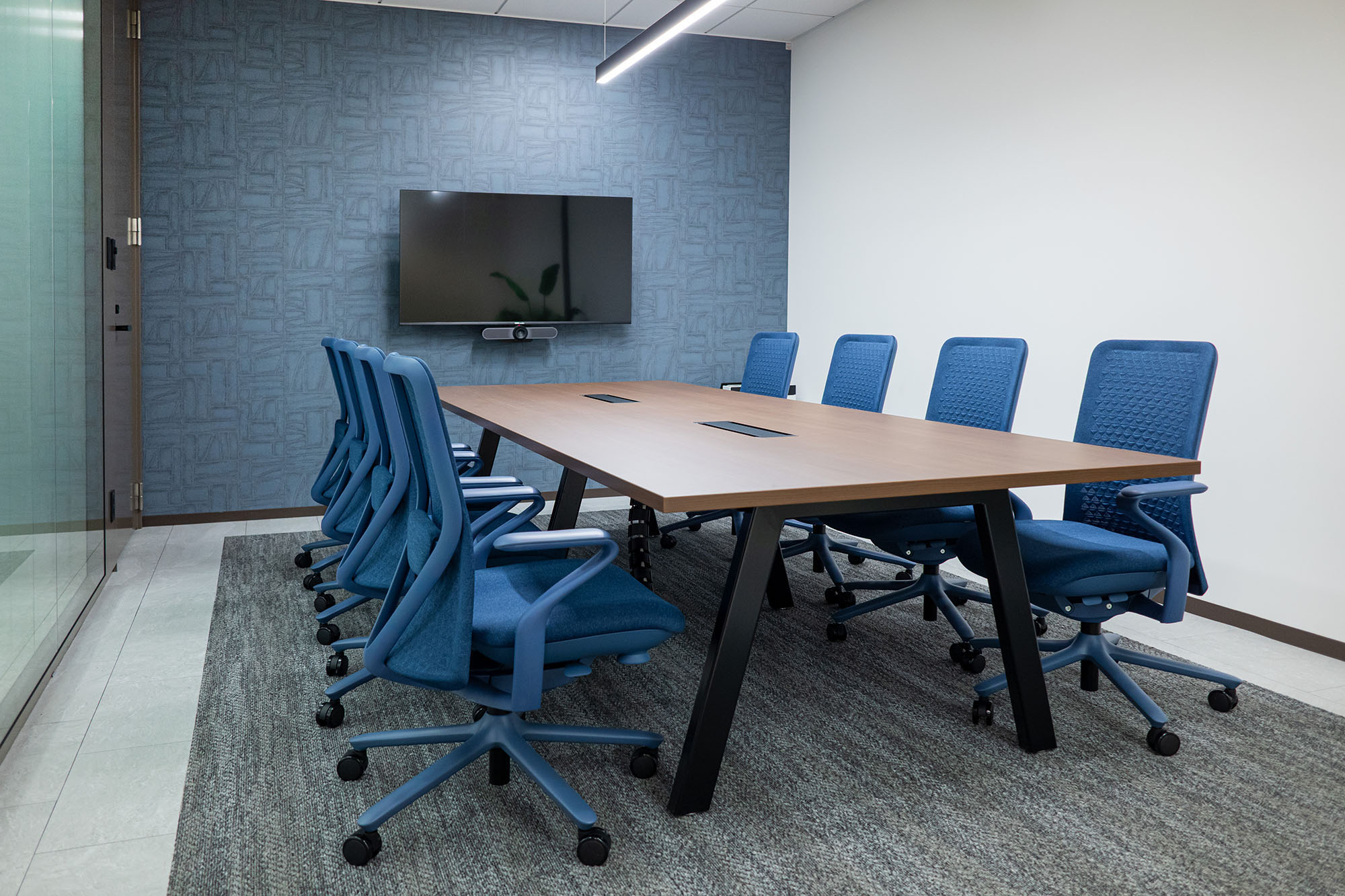 ・会議室の壁をガラスにし、圧迫感がなく、広々とした開放感のある空間を演出した。
